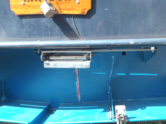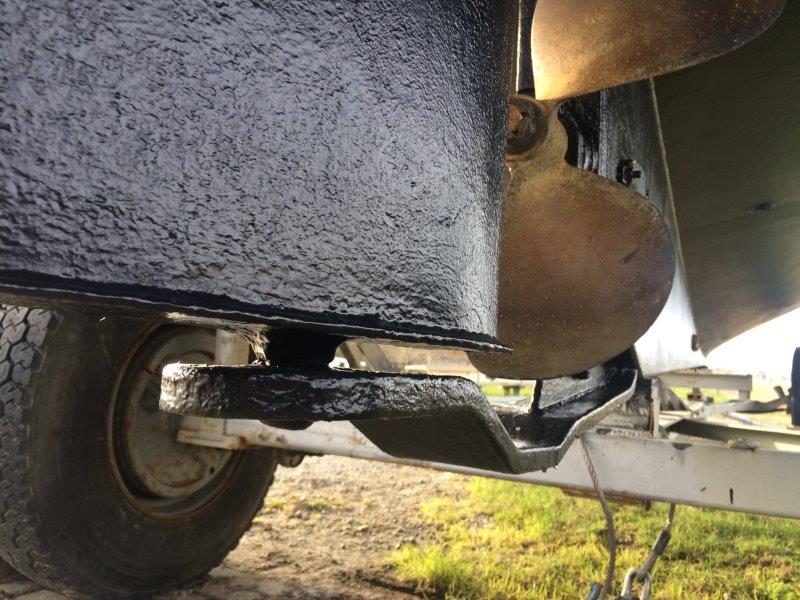 Durch den Umbau der Kielhacke mit Stahl-Verlängerung und gleichzeitiger Ruderblattaufnahme unten wird das Ruderblatt wirksam in flachen Gewässern vor Grundberührungen geschützt. Insbesondere das zusammenharken von Unterwassergegenständen wird dadurch ausgeschlossen.